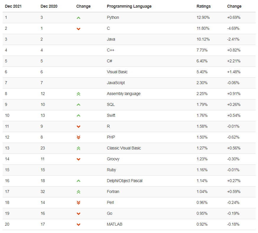 최근 웹 개발 이외에도 그래픽, 머신러닝 업계에서 선호하는 언어로 최근은 C, JAVA를 제치고 선호도 1위에 오르기도 했다.
