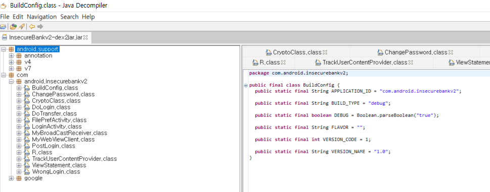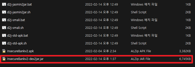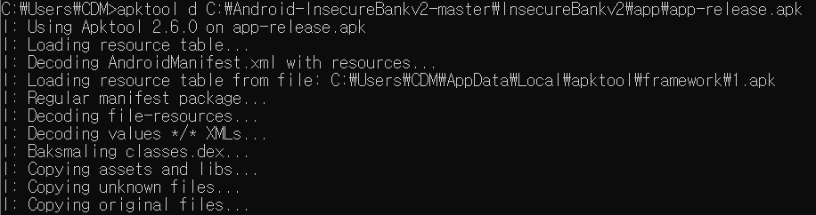 (명령어 : d2j-dex2jar.bat InsecureBankv2.apk)
