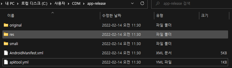 C:\Users\CDM\app-release 폴더에서 결과값 아래와 같이 확인